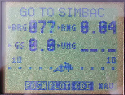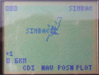 (Track), der Kurs zum aktiven Wegpunkt (hier Simbac) und die Wegpunkte